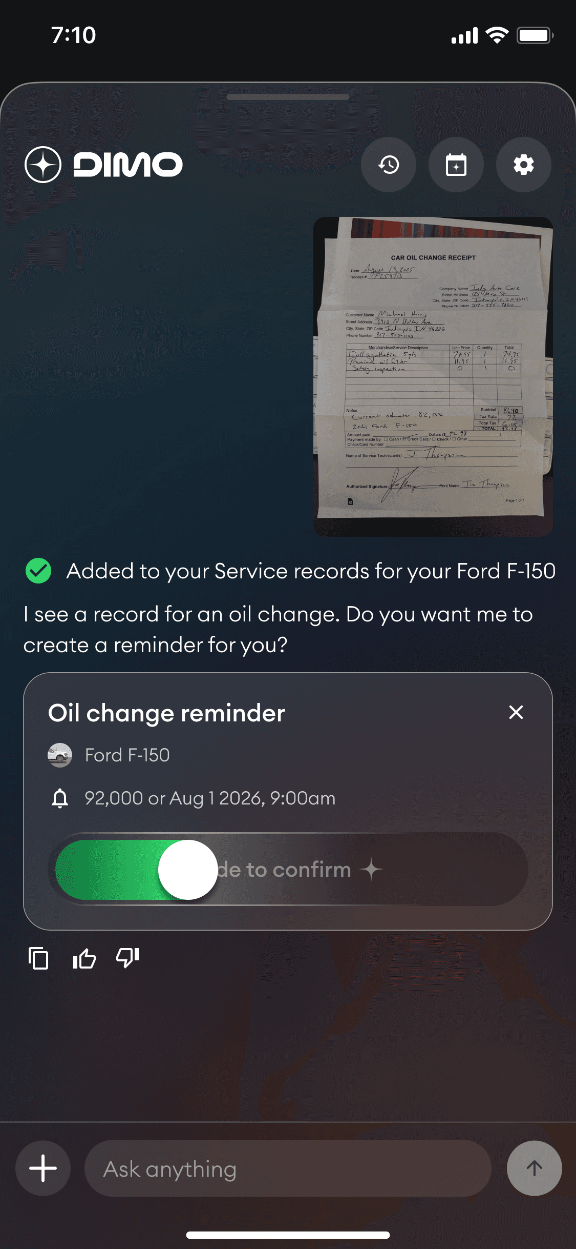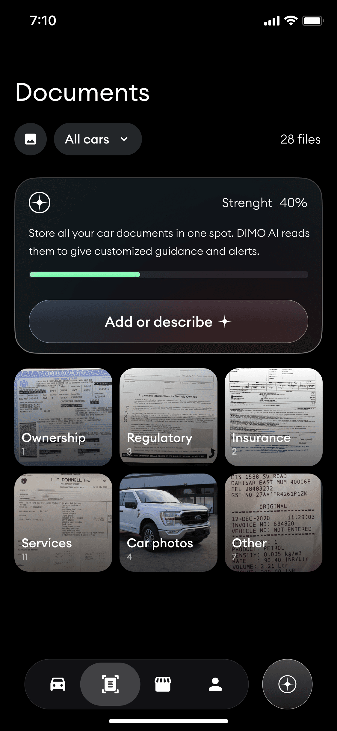 This was a strategic gap. For AI to guide ownership decisions, it needed structured context. Service records, insurance policies, registrations, and receipts turned telemetry into ownership memory.