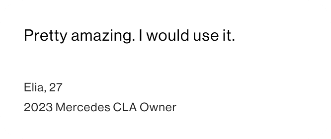 Even without large scale distribution or full analytics infrastructure, early tester feedback was directionally strong. Recommendation and continued use intent both skewed high, even when users experienced noticeable latency in AI responses. The friction was operational, not conceptual. Interest in the device showed similar upside once it was framed as an enhancement to unlock deeper intelligence within the ownership system.
