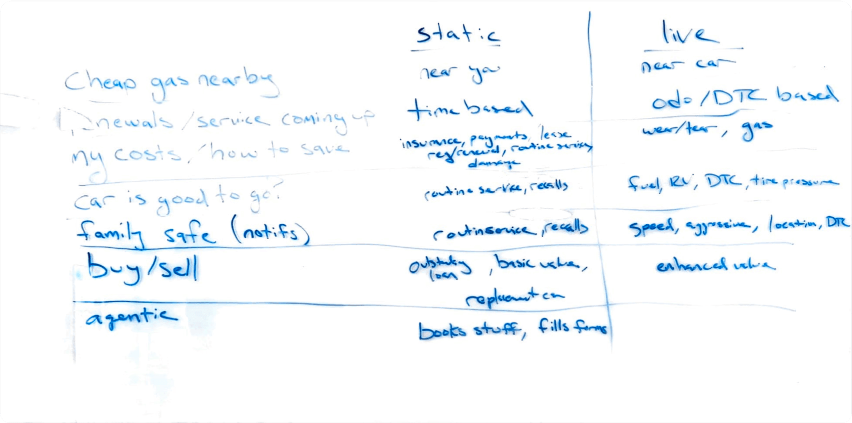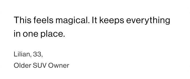 This exercise revealed that we were positioned to participate in higher value ownership moments, not just maintenance reminders. We could support decisions like when to sell, whether to repair or replace, and how much a vehicle was worth over time.