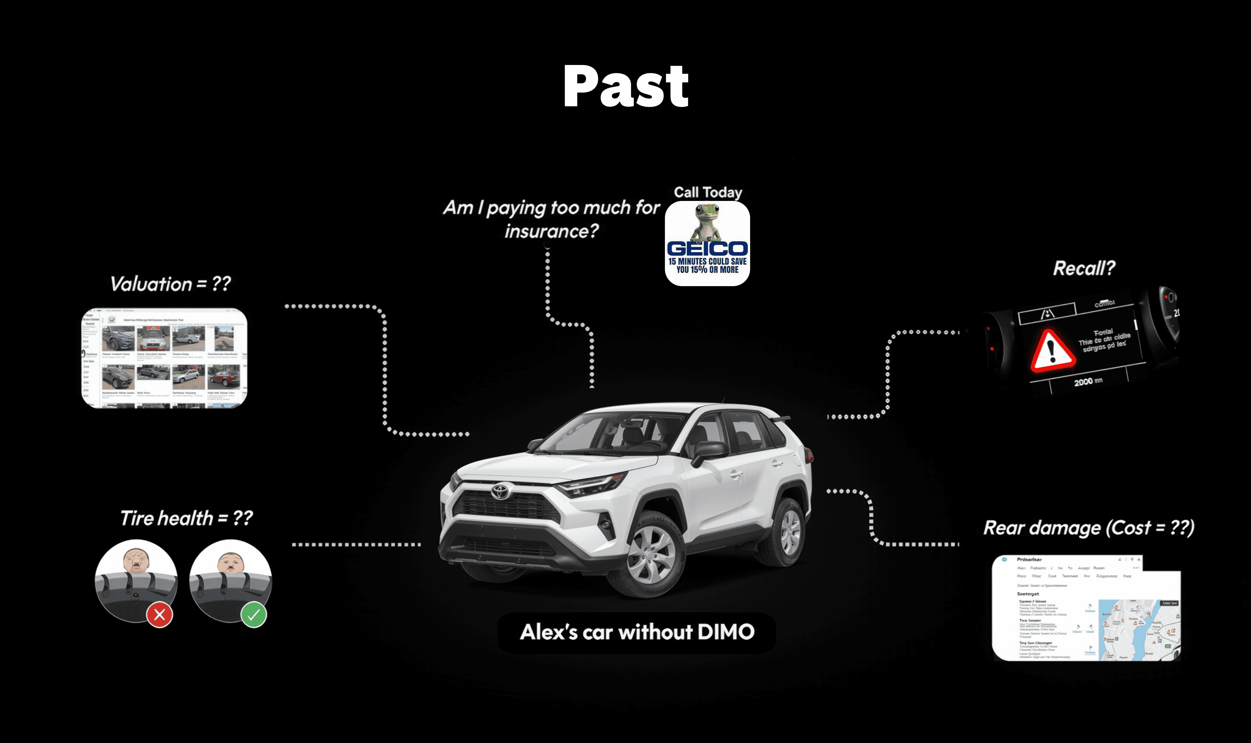 Ownership today is reactive and fragmented. Apps show status. Search engines answer questions. Drivers still connect the dots themselves. We believed DIMO could evolve into an ownership decision system. Instead of showing vehicle data, the product would guide actions. Instead of dashboards, it would manage outcomes.