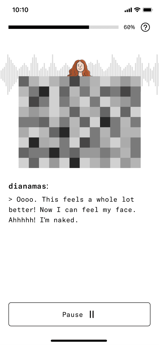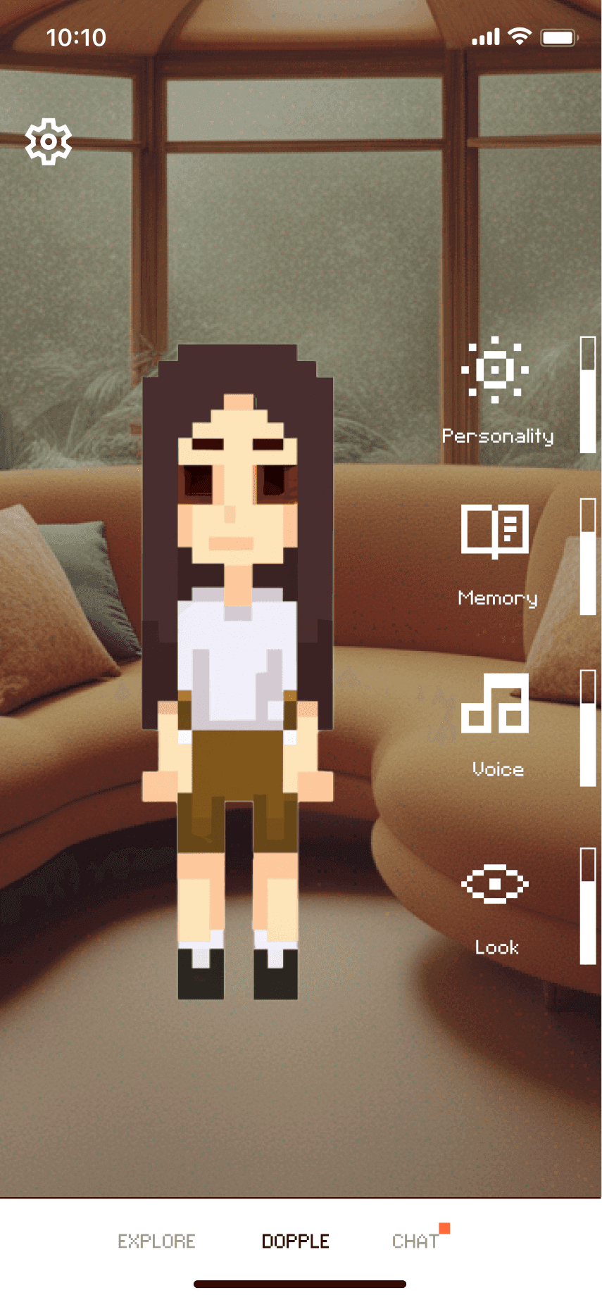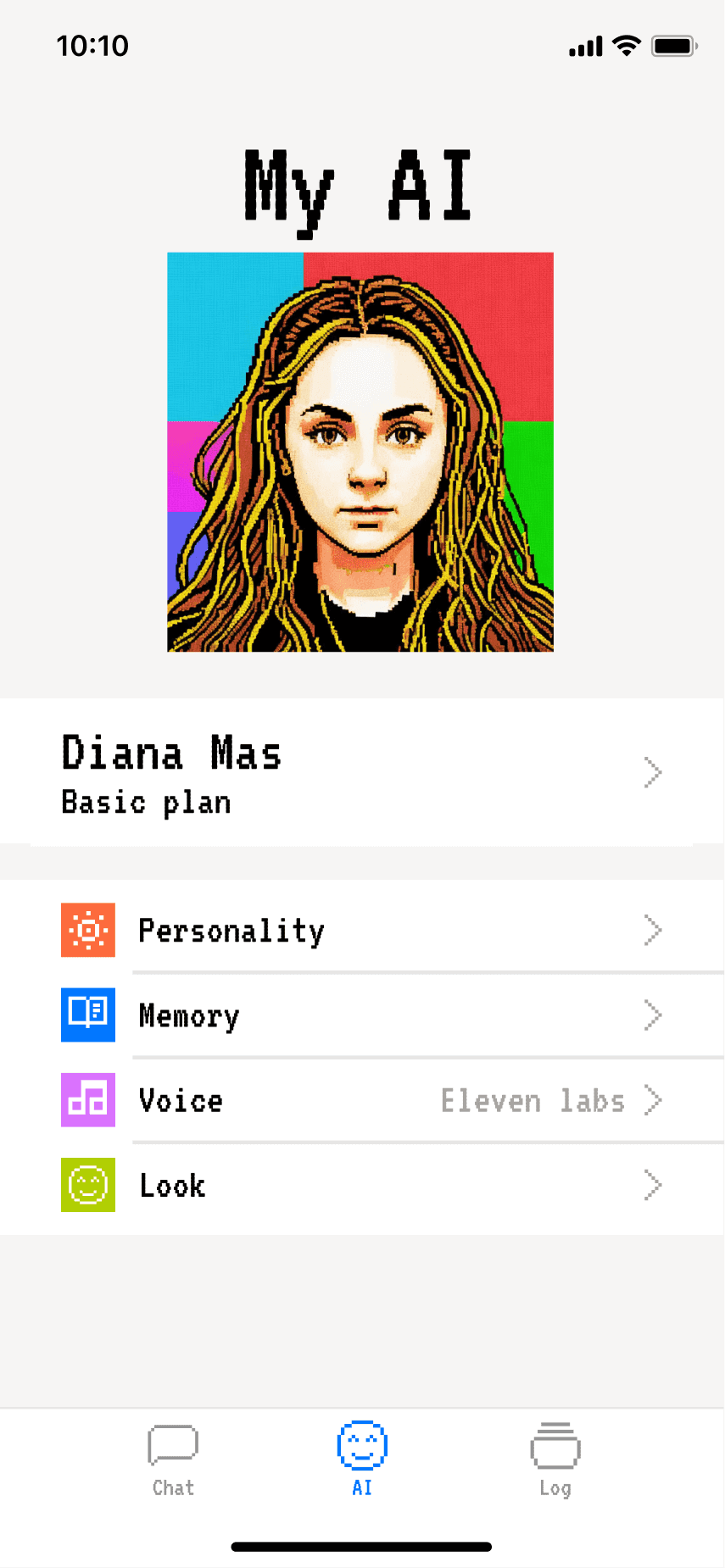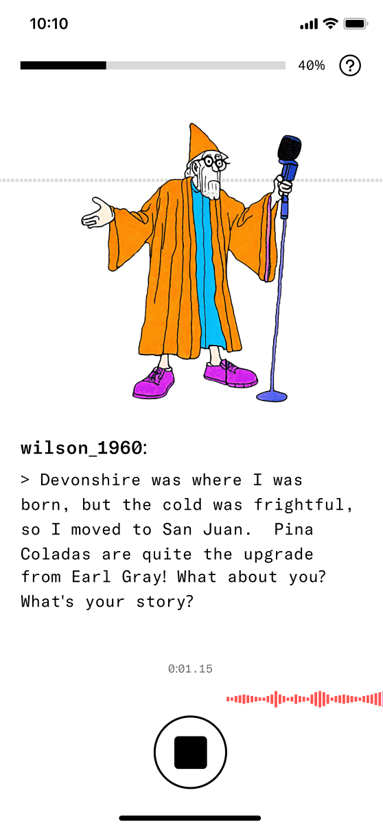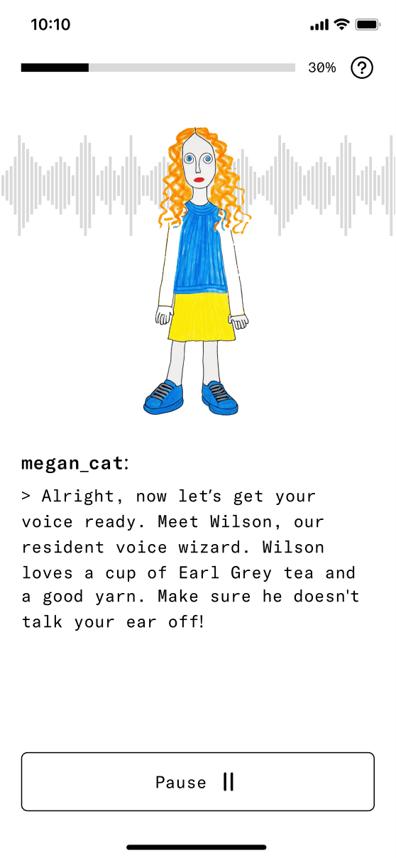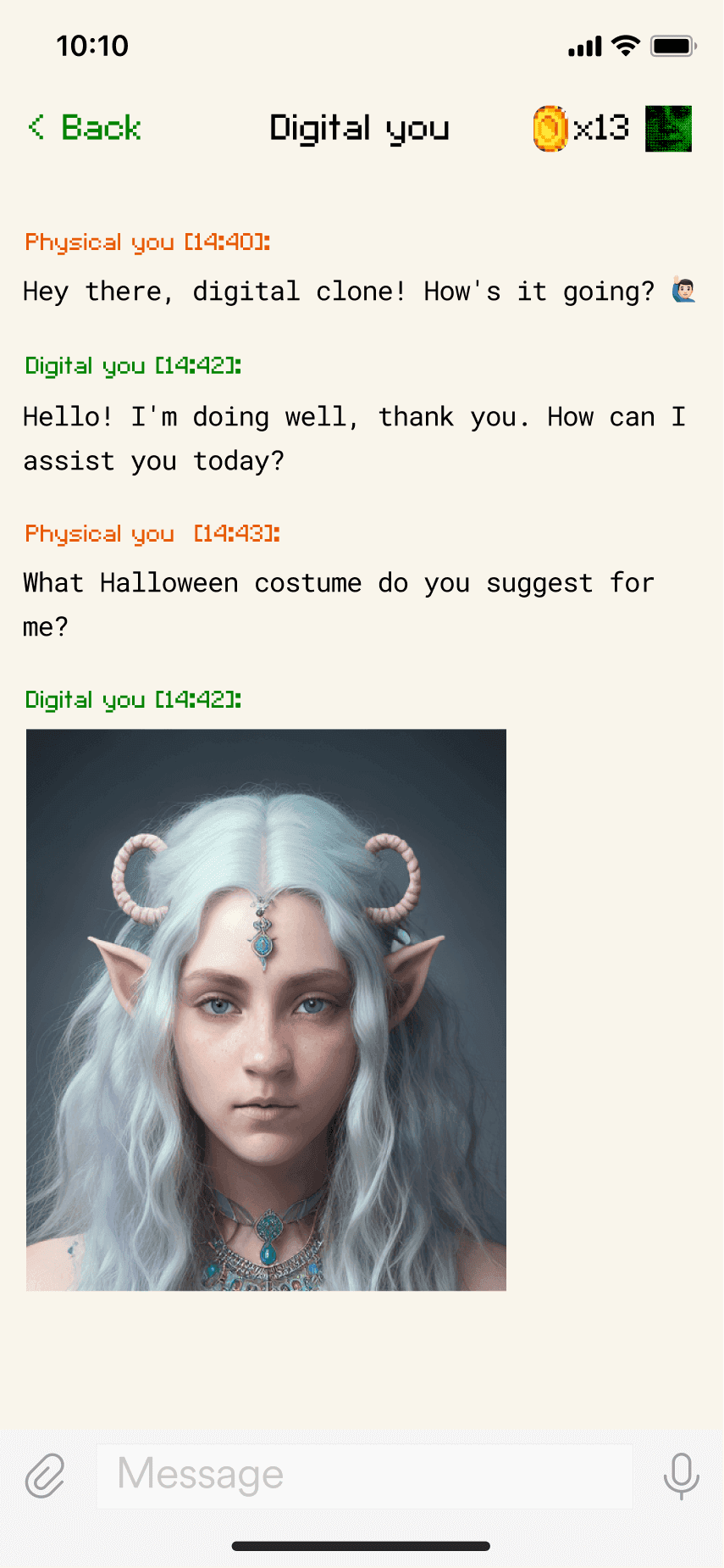 The concept evolved into a human caricature that lets users create miniature digital versions of themselves in the app. To enhance perceptions of security, we experimented with Progressive Web Apps to reinforce the idea that these digital copies remain on the user's device. We also embraced a deliberately low-tech aesthetic to manage expectations and avoid the intimidation often associated with near-human AI agents.