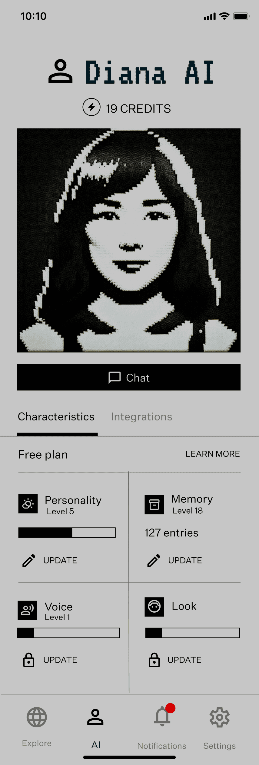 Our team dedicated considerable time to crafting a unique visual identity for our app, opting for a simple, low-technology aesthetic. We aimed to convey the feeling of a living entity residing within the user's phone. The app's design was anchored by the procedurally generated image of the user's avatar, requiring a user interface that seamlessly aligned with our engineering possibilities.
